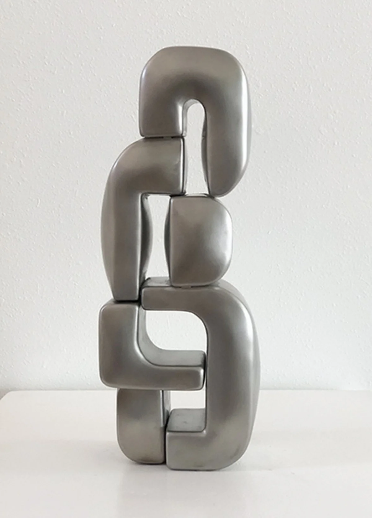 His forms often reference archetypal relationships, such as parent and child or familial bonds, capturing the tension and cooperation inherent in human connection. This thematic focus is evident in works like Rubric #8B and Rubric #16, where relational dynamics are expressed through the juxtaposition of separate yet interdependent elements. At the same time, Culligan’s practice is rooted in material exploration, emphasizing the act of making as central to his creative process. He describes this as "intentional transference," a means of imbuing material manipulation with emotional and spiritual intent.